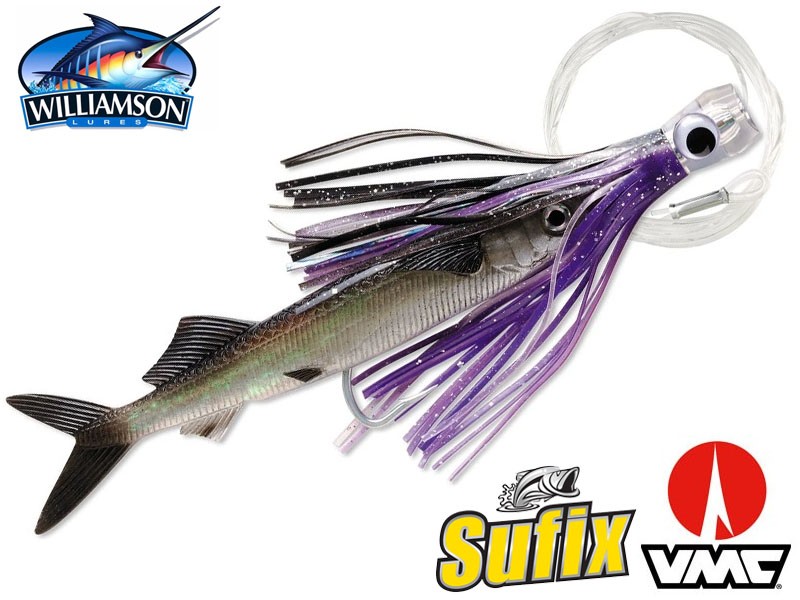 Williamson's Rigged Live Ballyhoo Trolling Combo se skládá z "živé" návnady Ballyhoo pro měkký trolling, která je namontána na Sailfish Catcher soklové trollingové přípravě, aby vytvořila jednu smrtící trollingovou zbraň!